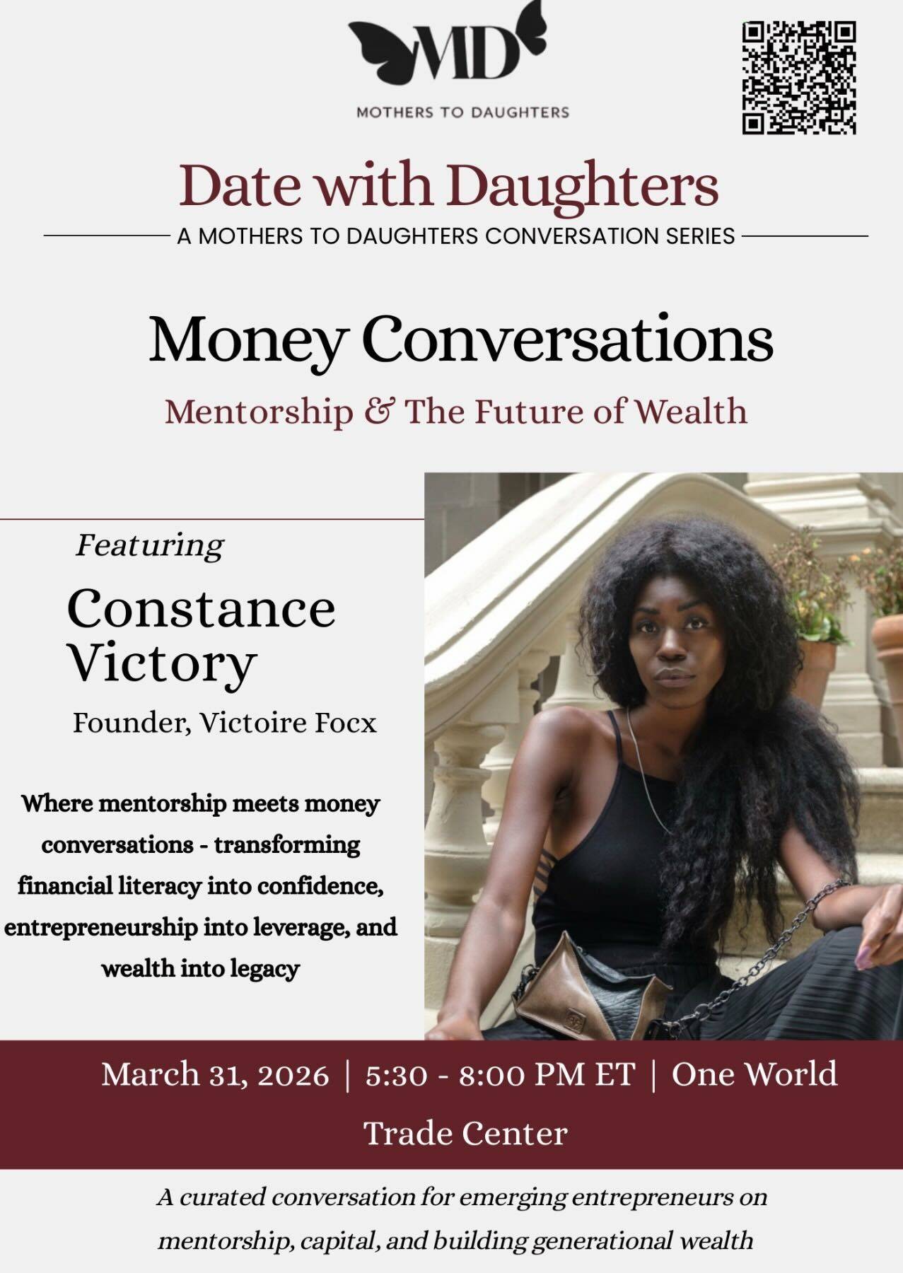 Join us as we explore how mentorship, financial literacy, and entrepreneurship become the foundation of generational legacy. At Date with Daughters, our curated gathering of emerging entrepreneurs, we intentionally break that silence. This edition invites us into an honest, structured conversation about money, ownership, and building enterprises that outlive us. With special guest Constance Victory, we will explore how financial literacy becomes confidence, how entrepreneurship becomes leverage, and how intentional wealth-building becomes legacy. Because legacy is not simply something we leave behind. It is something we build, together, across generations.